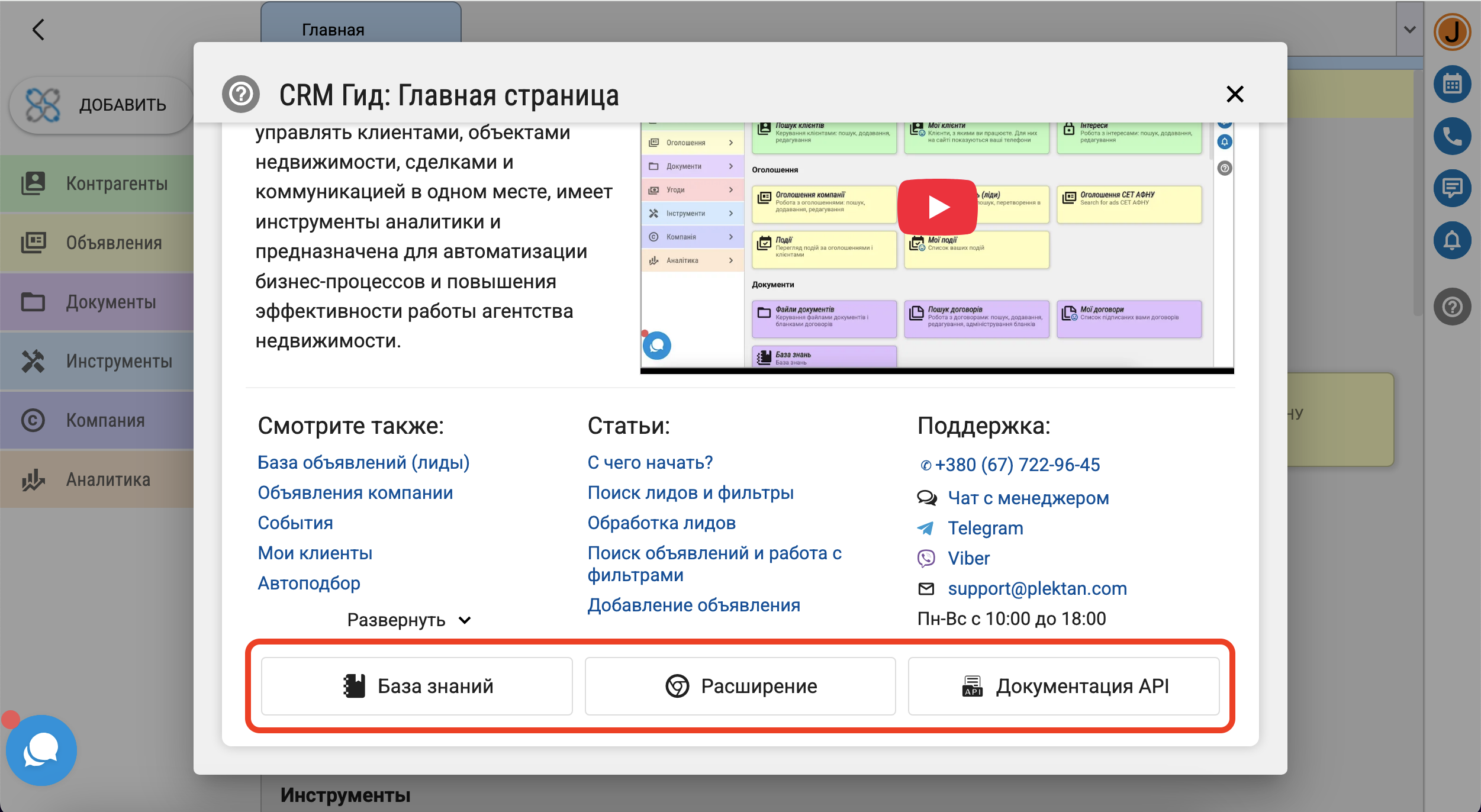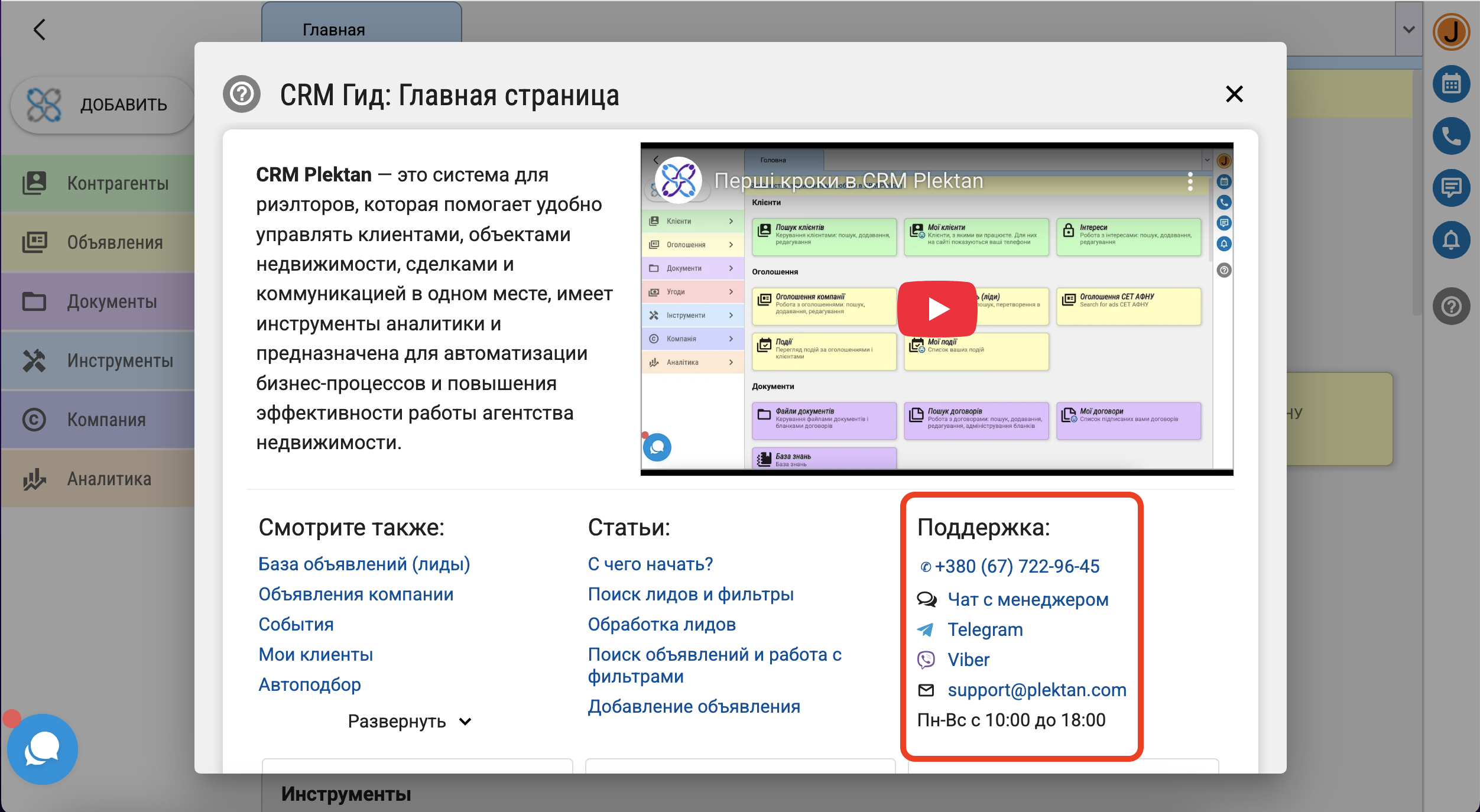 В ситуациях когда вам нужна справочная информация по системе или у вас возникают трудности при работе с CRM Plektan вам может быть полезна информация раздела "Помощь"