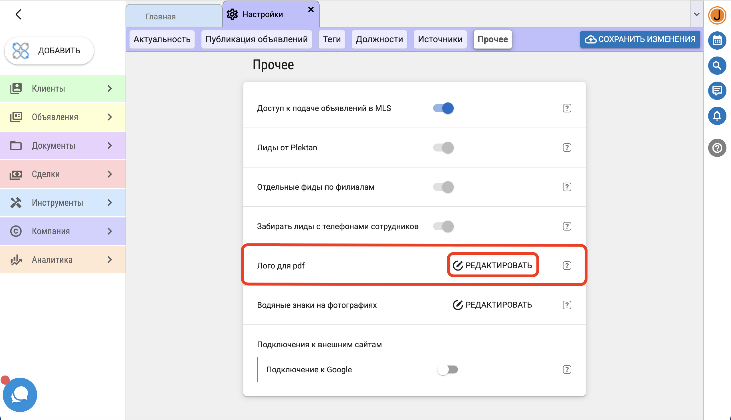 в открывшемся новом окне возле поля "Лого для pdf" нажмите "Редактировать".