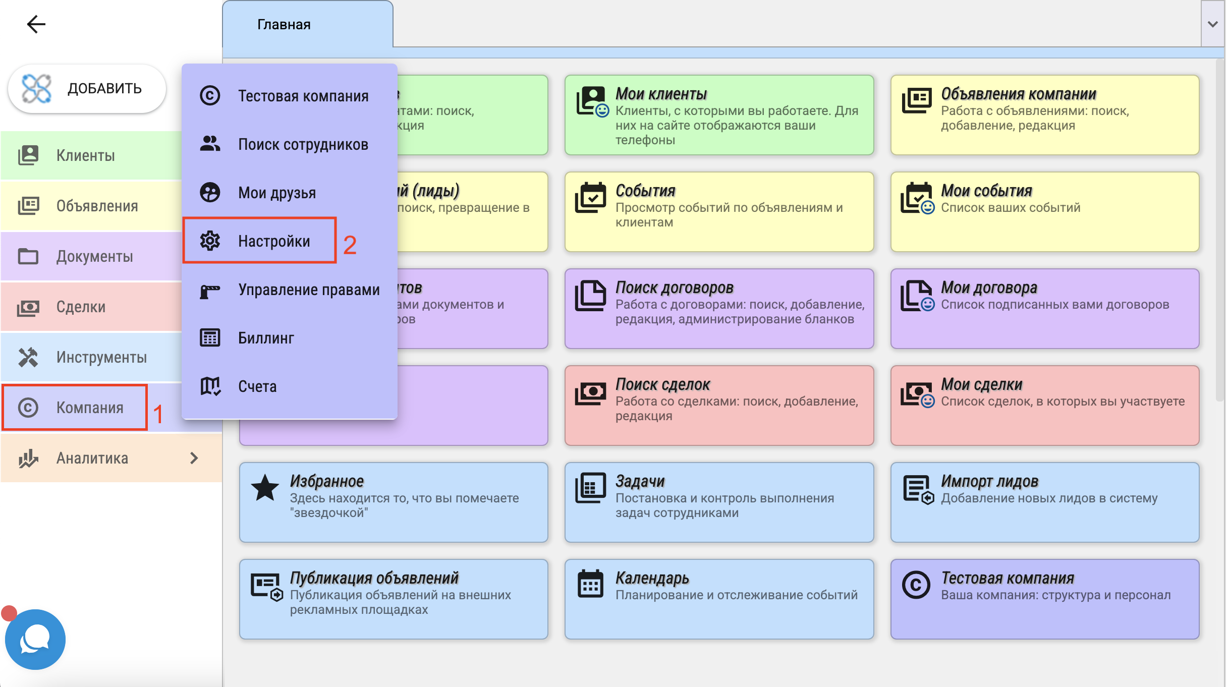 Выберите в меню "Компания" - "Настройки".