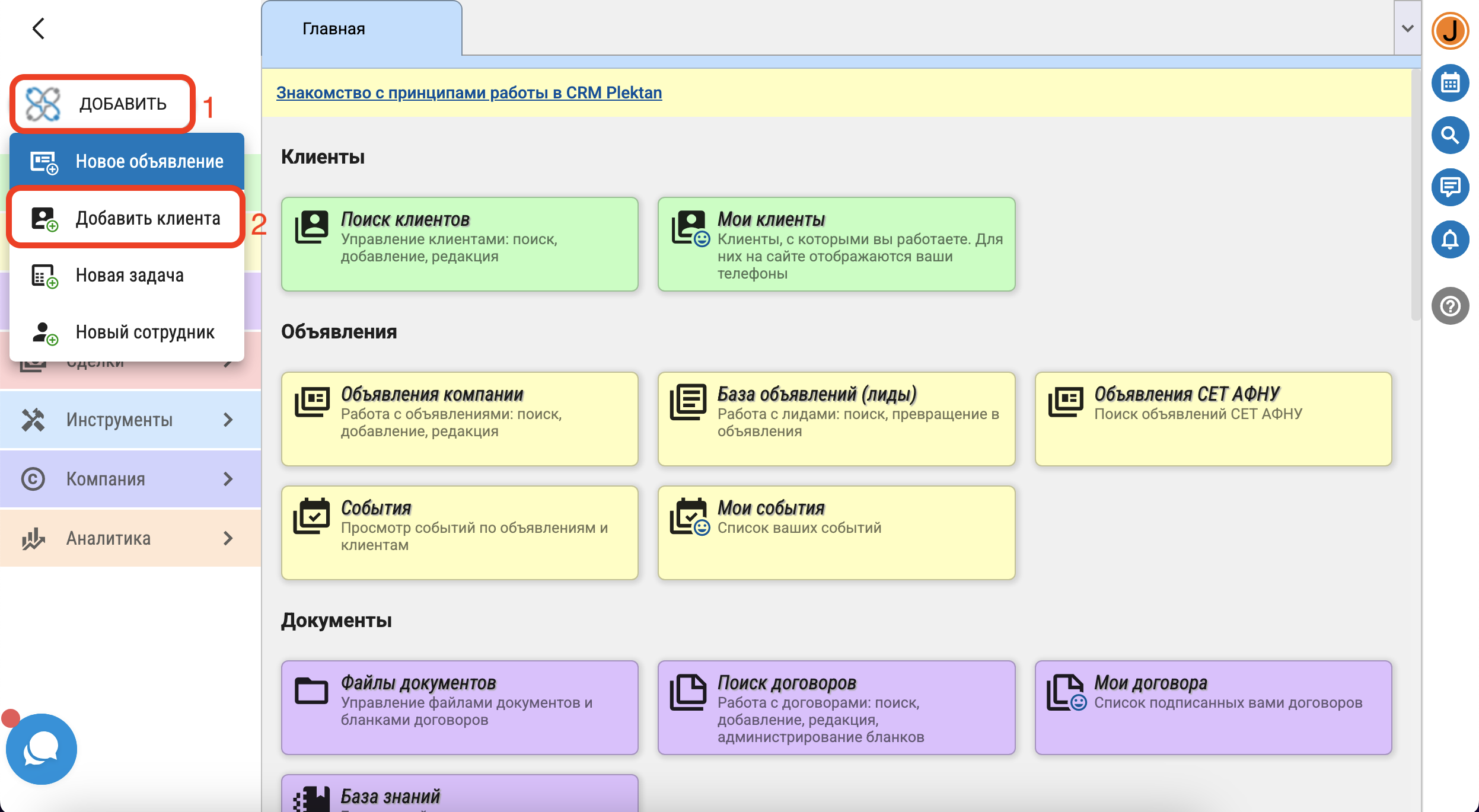Чтобы добавить нового клиента, необходимо в меню выбрать "Добавить" - "Добавить клиента".