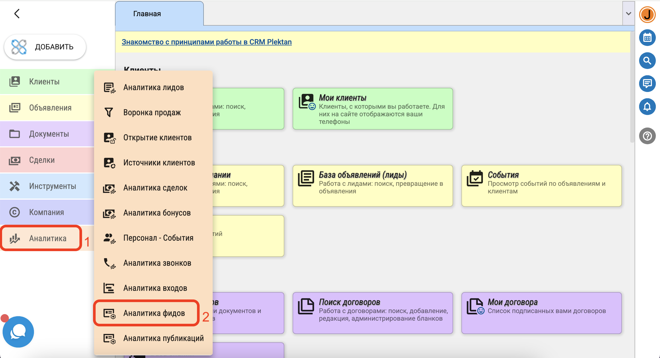 Для того чтобы узнать, какие порталы и когда просматривали ваш фид, нажмите в меню "Аналитика" - "Аналитика фидов".