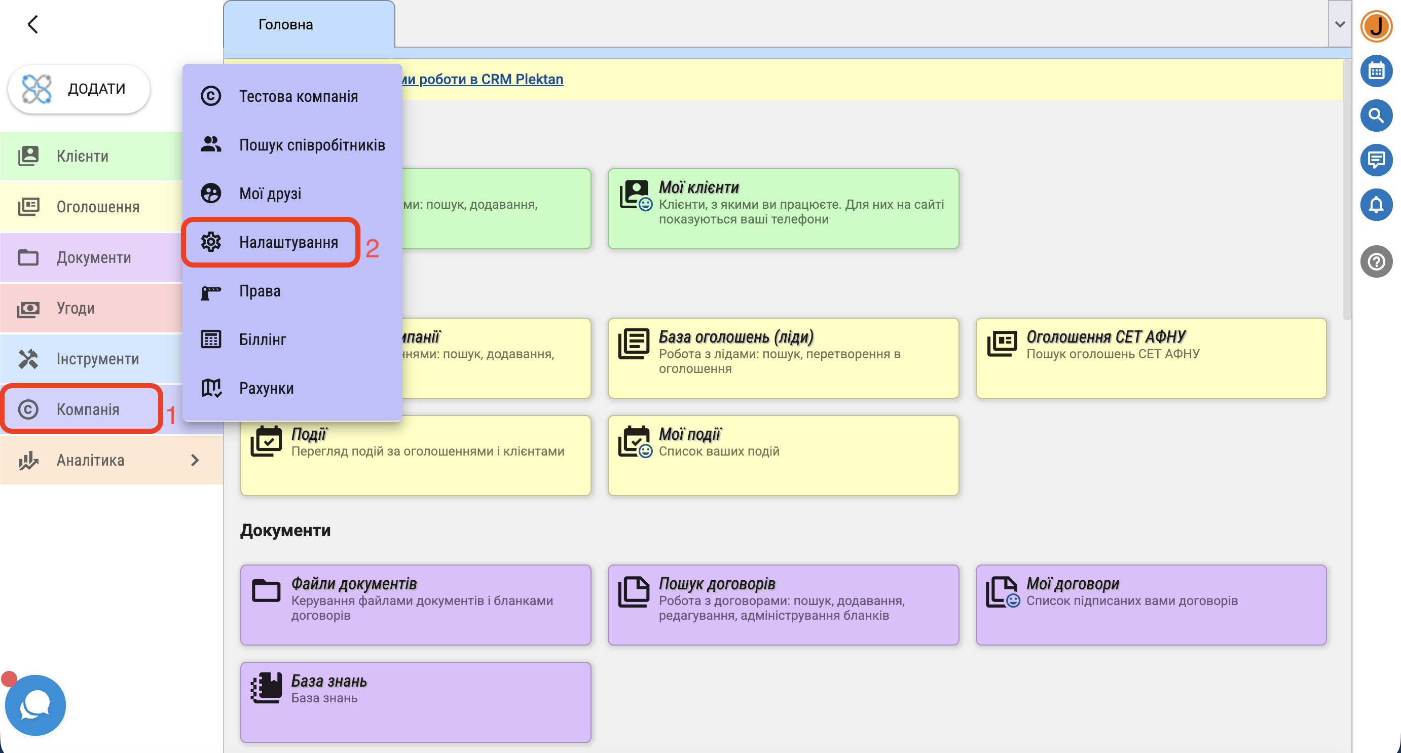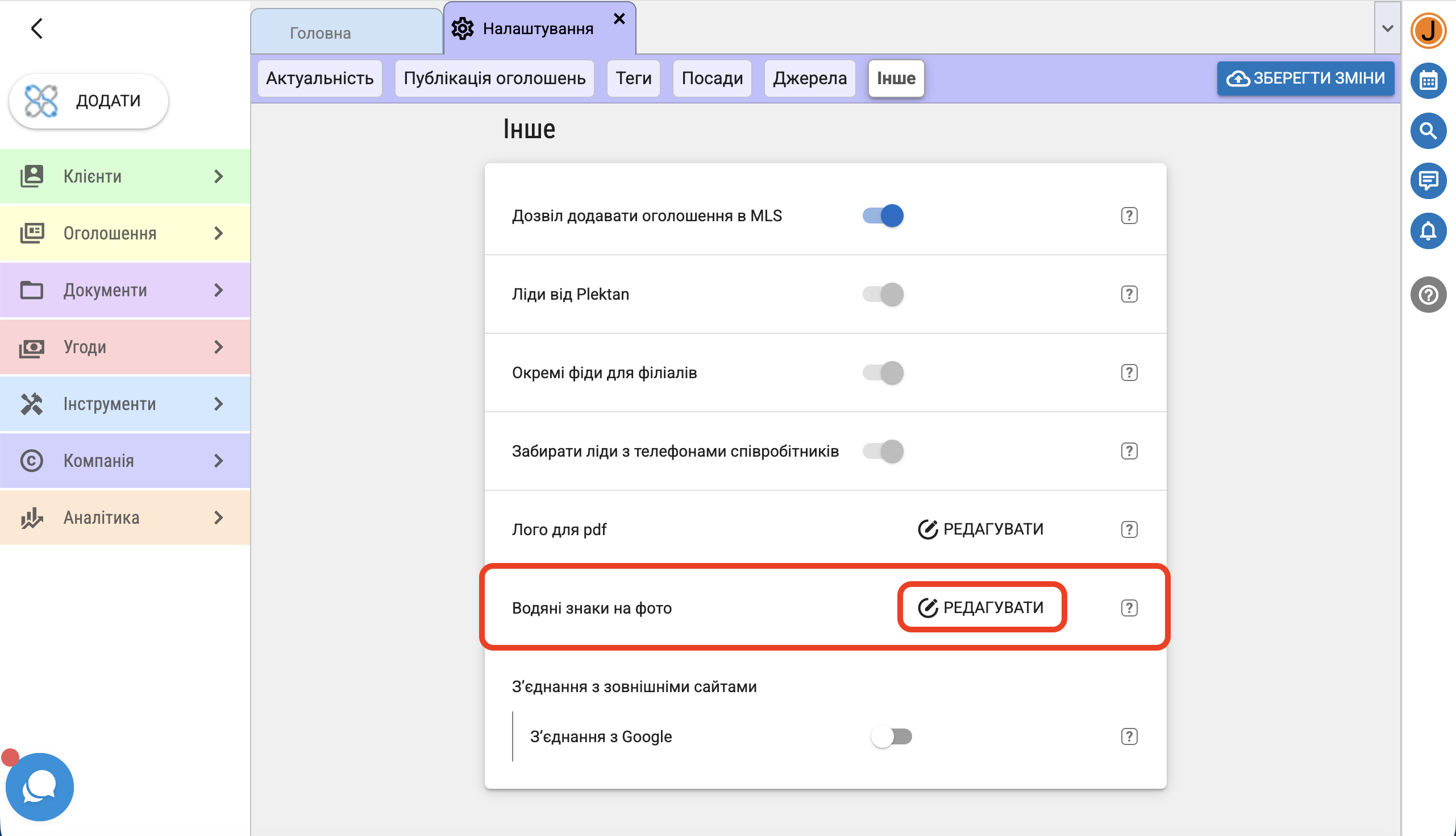Для налаштування водяного знаку оберіть в меню "Компанія" - "Налаштування".