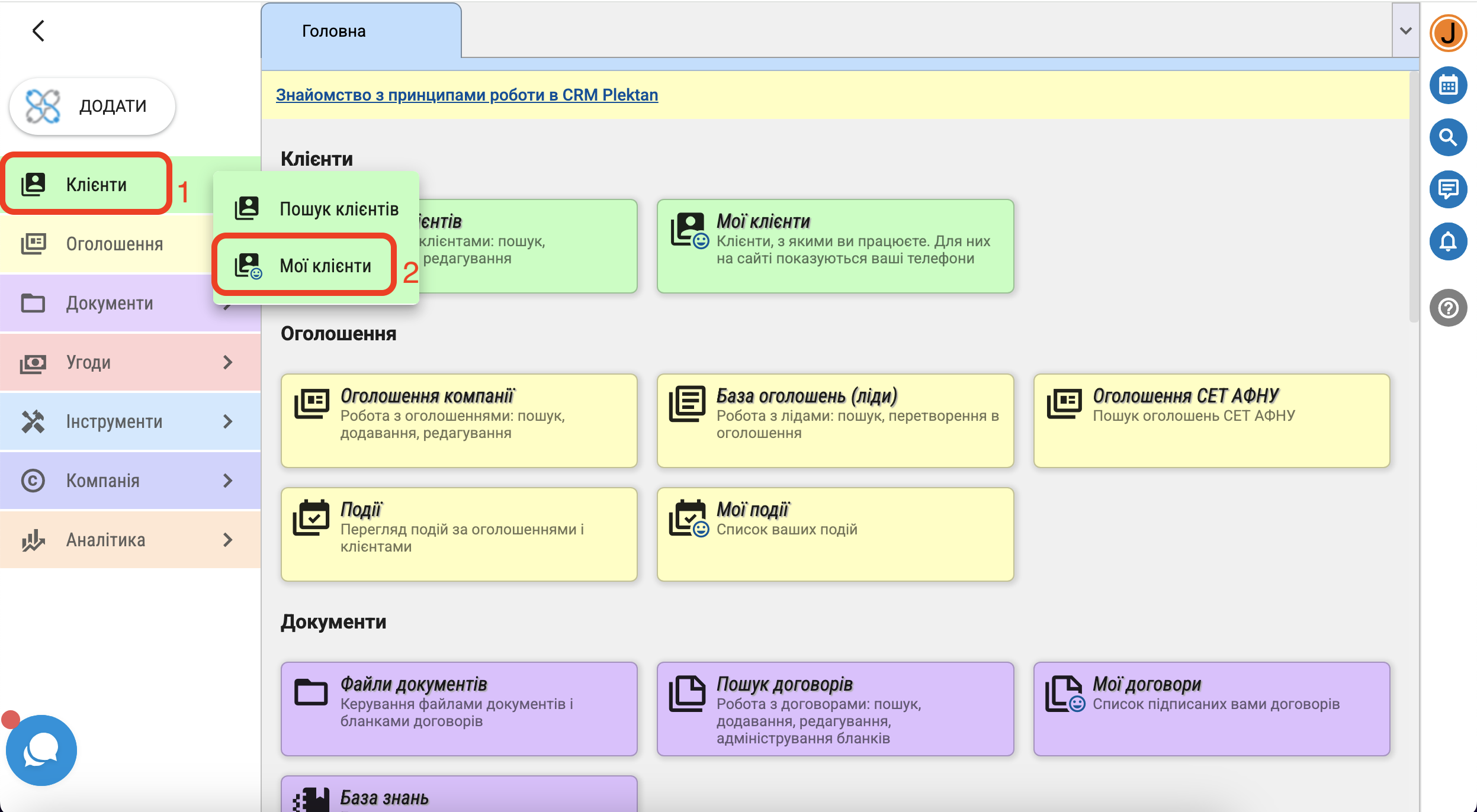 Щоб перейти до списку "Мої клієнти", натисніть в меню "Клієнти" - "Мої клієнти".