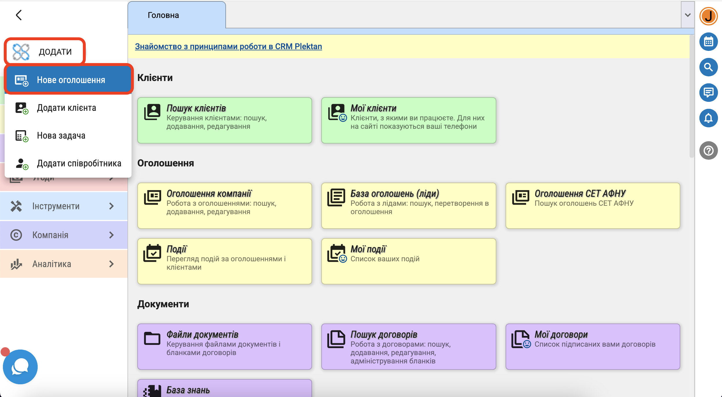 5. Для користувачів пакета Start - додавши "вручну" нове оголошення до системи