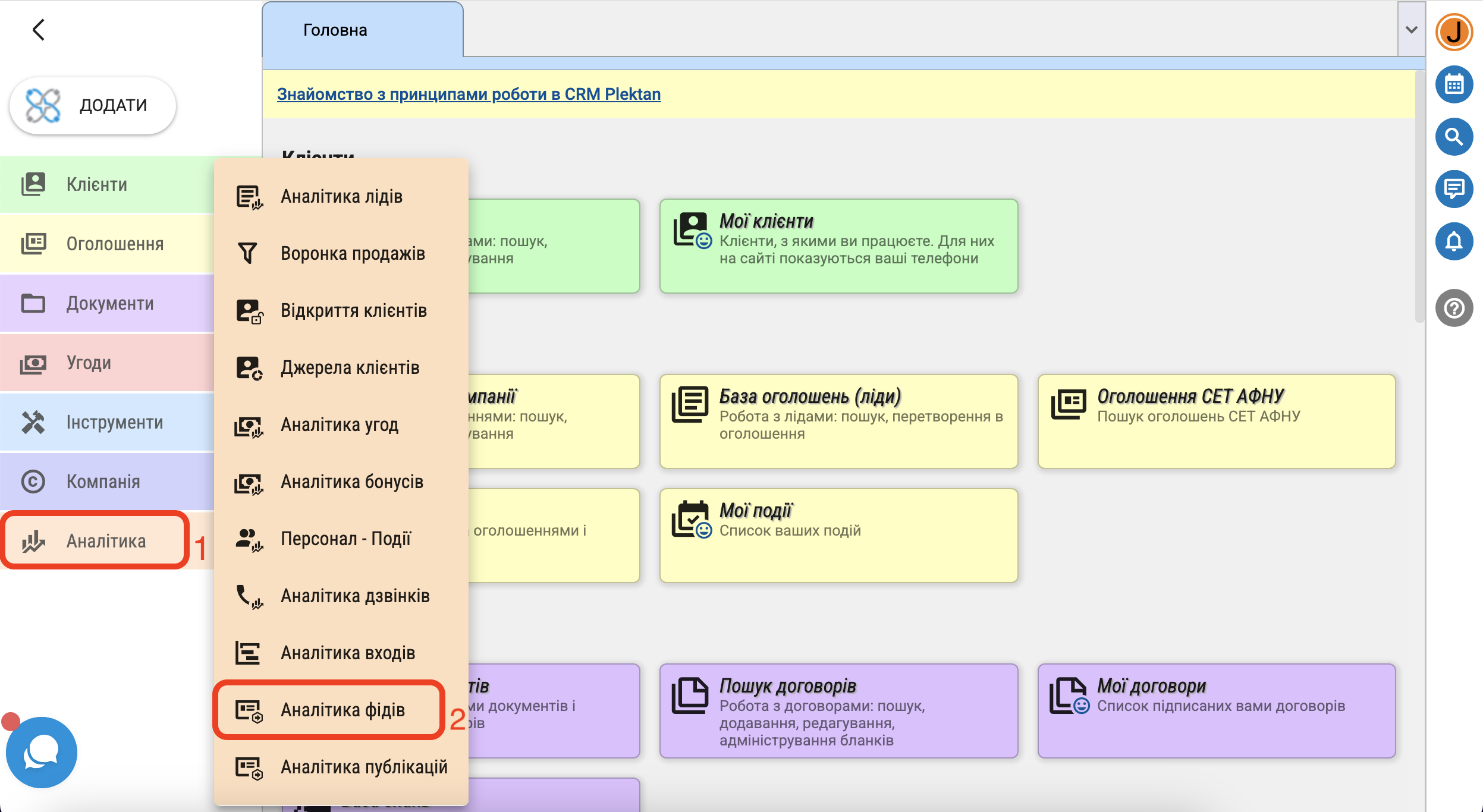 Для того, щоб дізнатися які портали та коли переглядали ваш фід, натисніть в меню "Аналітика" - "Аналітика фідів".