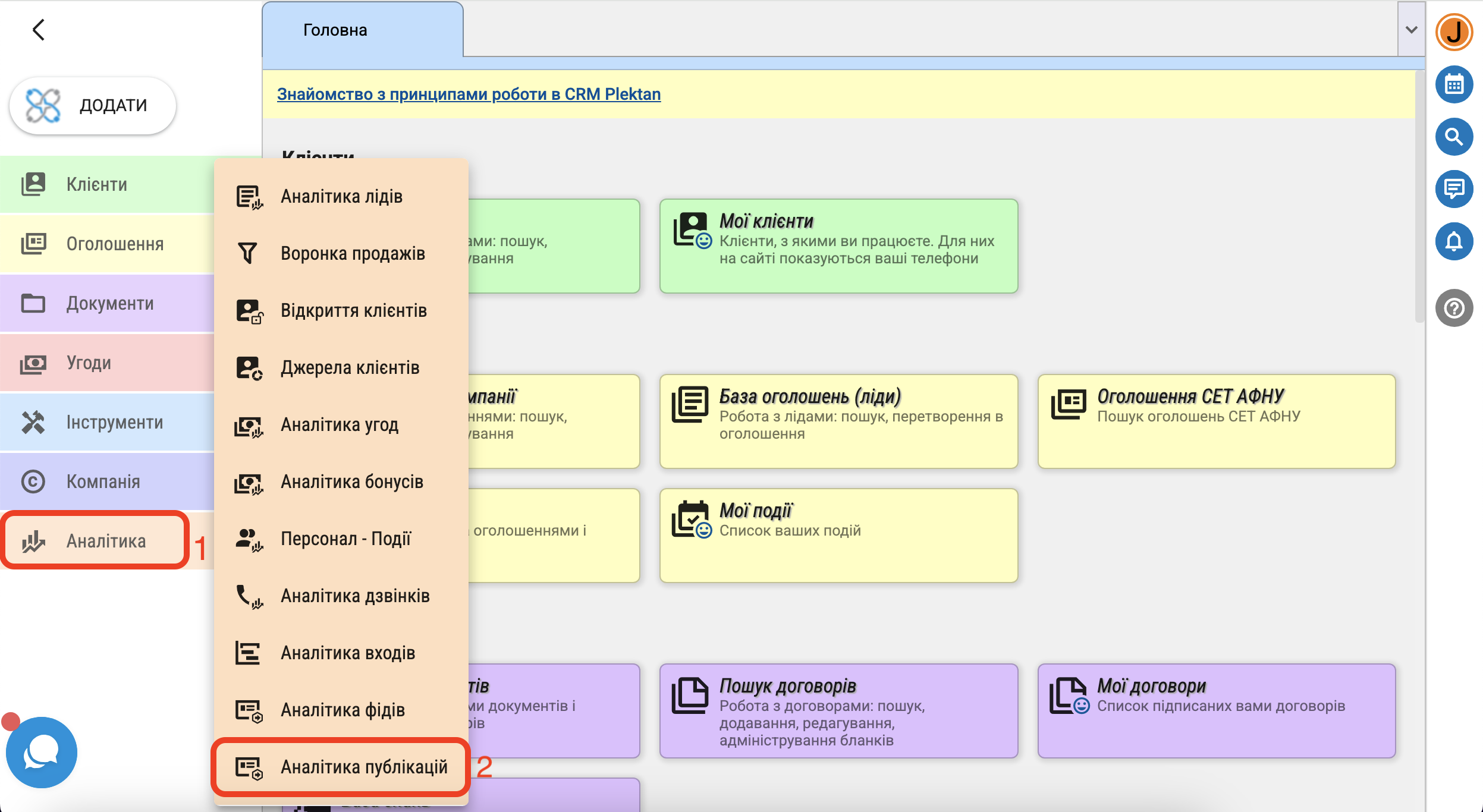 Для перегляду статистики публікацій натисніть в меню "Аналітика" - "Аналітика публікацій".