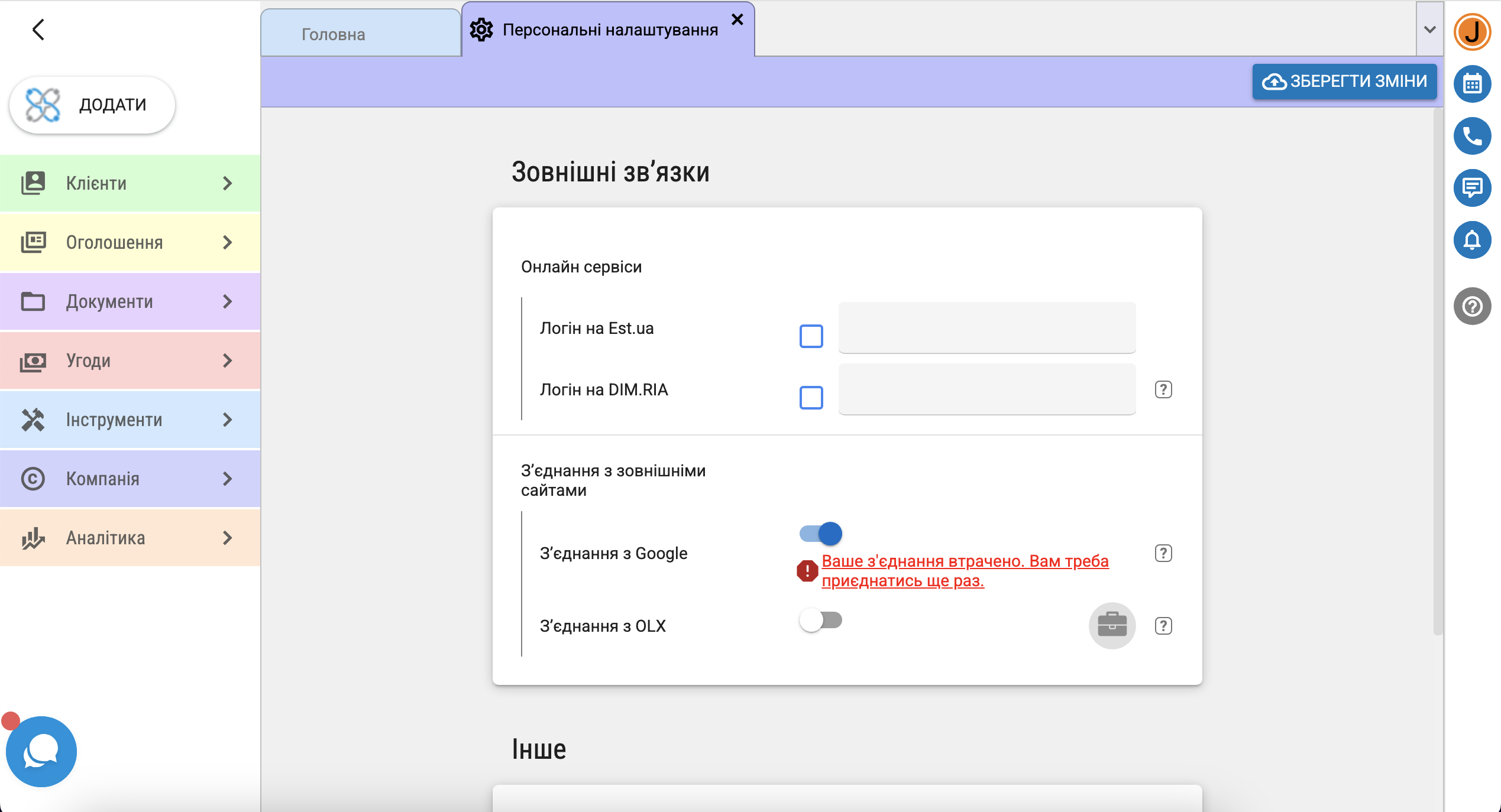 Якщо з'єднання з Google втрачено, в налаштуваннях "З’єднання з Google" з'явиться відповідне повідомлення.