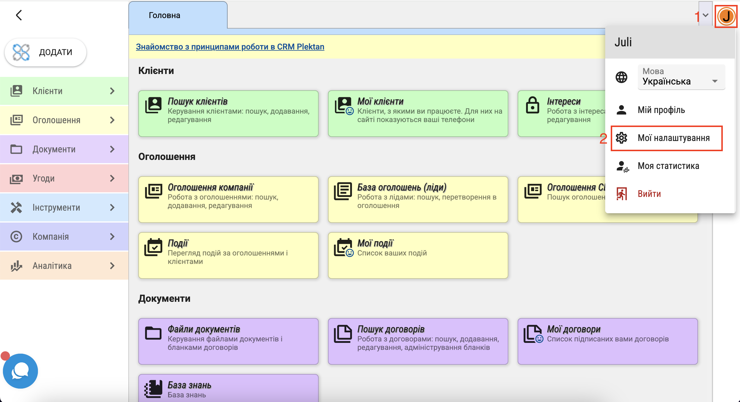 Щоб приєднати власний GMail-акаунт натисніть на кнопку свого профілю в правому верхньому куті та оберіть "Мої налаштування".