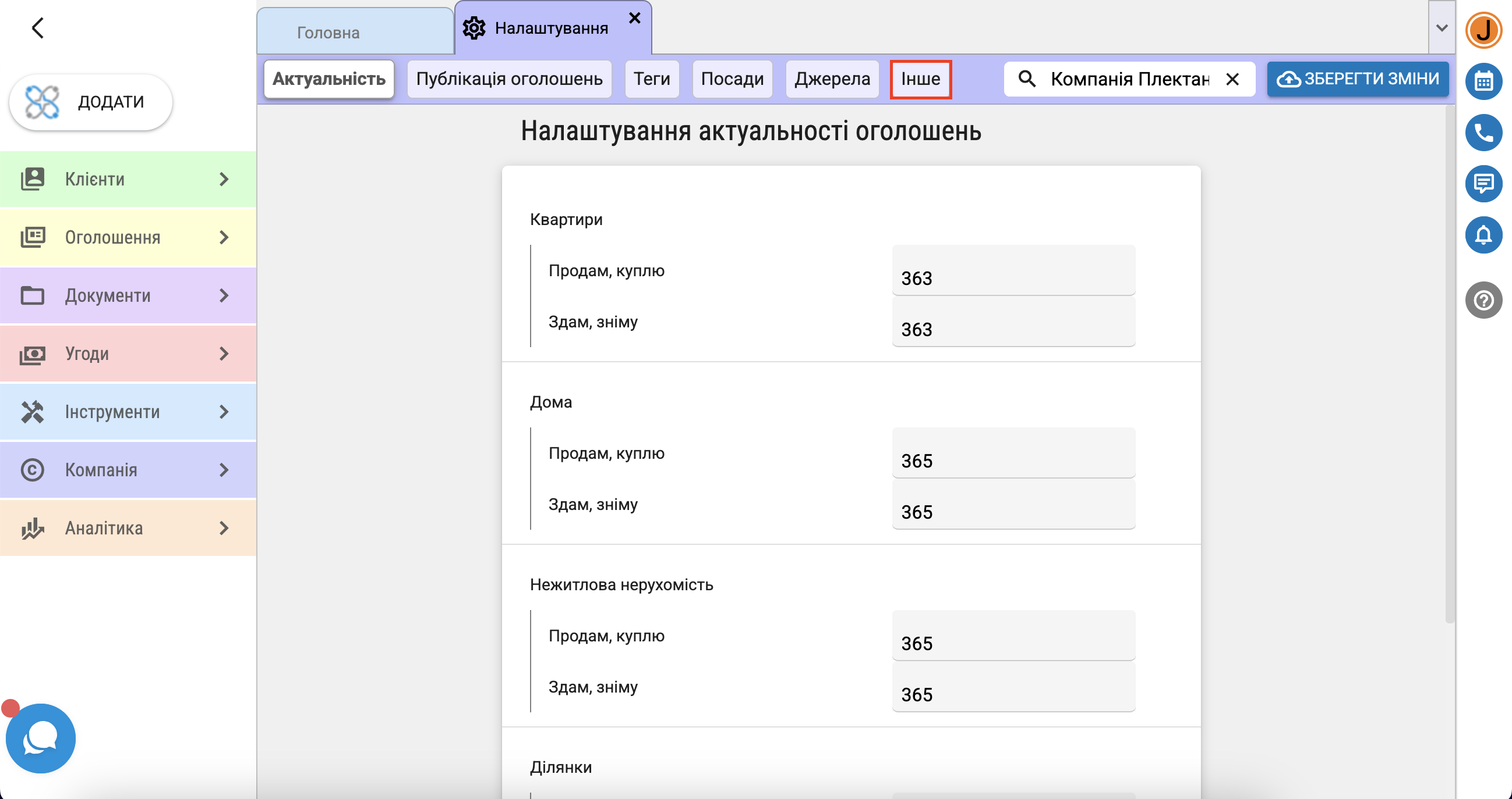 Автоматично відкриється сторінка "Налаштування" - "Актуальність", на якій оберіть - "Інше" та