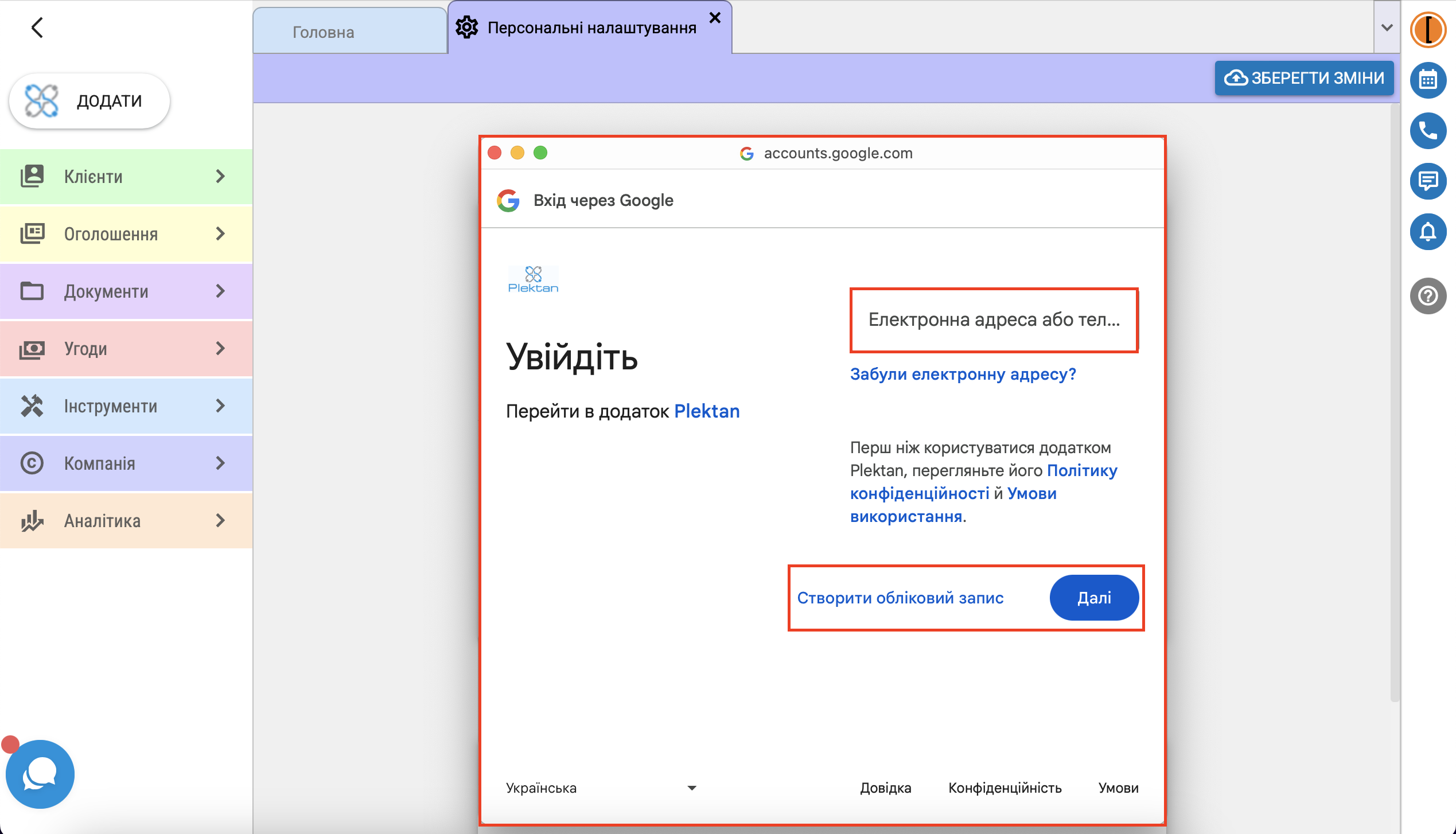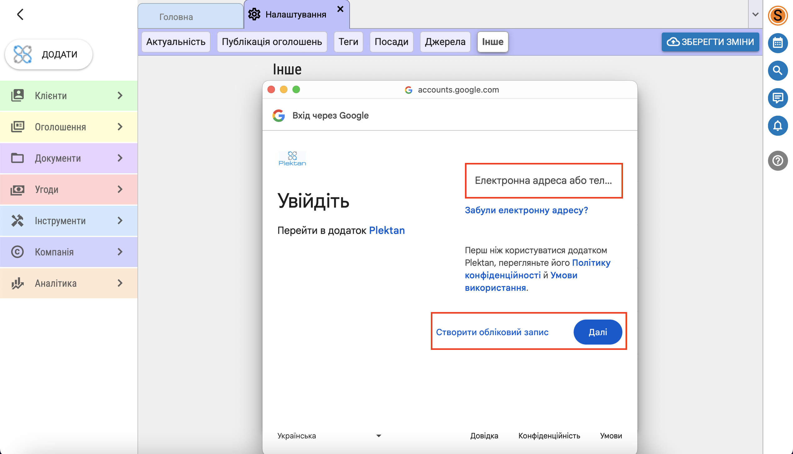 Щоб надсилати пропозиції клієнтам на пошту через GMail-акаунт компанії або через власні GMail-акаунти співробітників просто приєднайте відповідні GMail-акаунти до CRM Plektan.